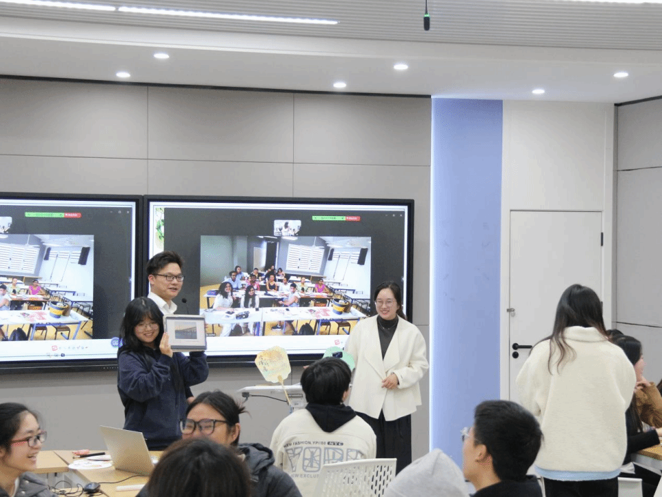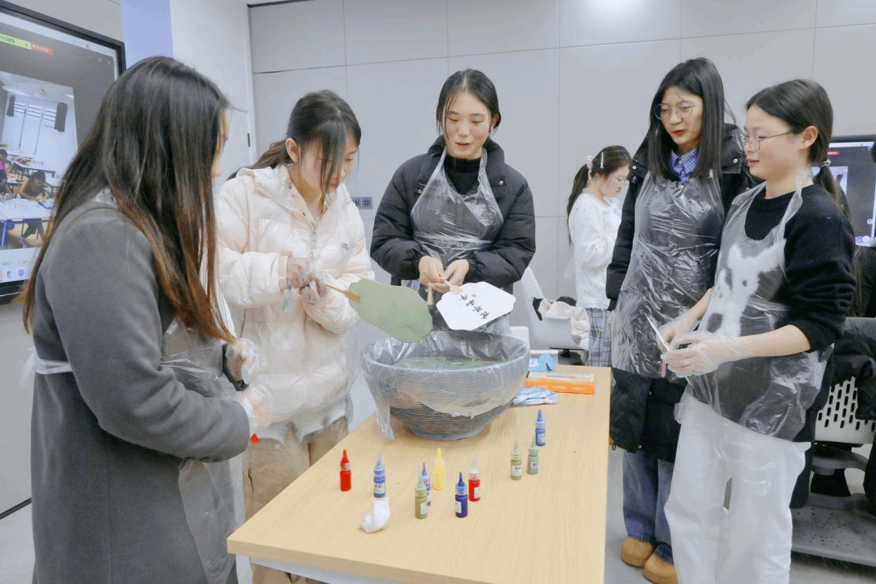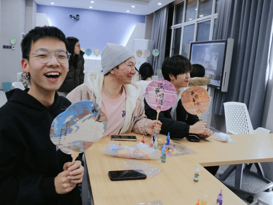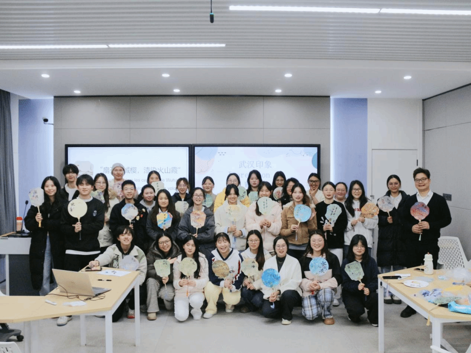 压轴的“漆扇共创”环节更将交流推向高潮,我院学生以传统漆艺在扇面勾勒樱花、长江等江城元素。其中,华夏文旅工作室成员李耀祖同学参与制作了融入江城元素的漆扇作品,与留尼汪学生的创意画作呼应,中式扇形与异域风情完美交融。双方约定,待后期由指导老师代为传递扇面作品,让这份跨洋情谊落地生根。