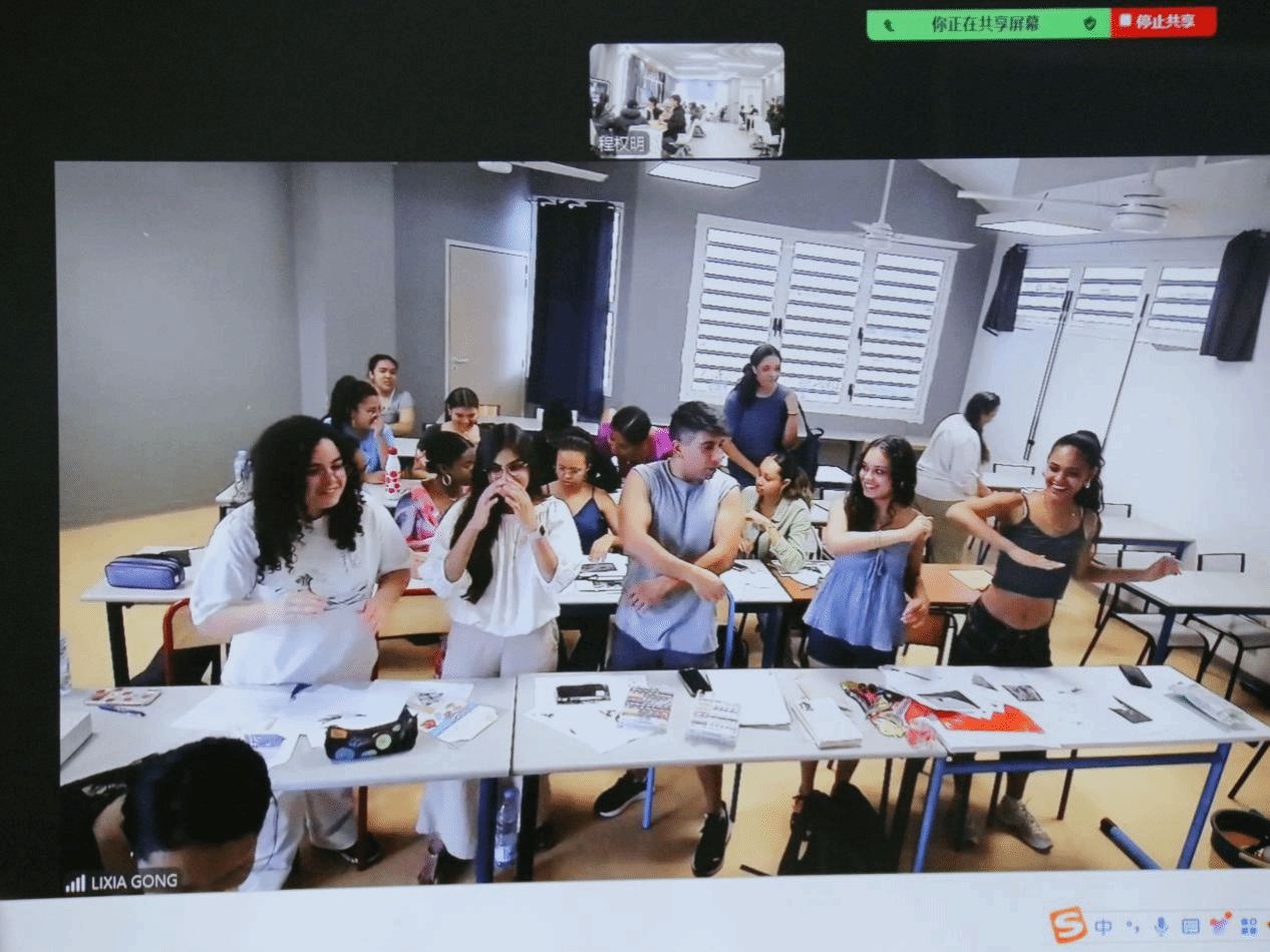 活动伊始,双方通过地域特色视频展开“云端赏景”。我院学生分享的视频中,黄鹤楼樱雪映飞檐、长江大桥缀烟火的画面,生动展现了武汉古今交融的城市活力;留尼汪学生带来的影像则呈现了火山霞光、蔗糖庄园的法式风情与多元文化交融的海岛魅力。光影流转间,两地青年直观感受中法文化的异同,在“各美其美”的认知中,悄然播下文化互鉴的种子。留尼汪学生纷纷感叹武汉的雄伟与烟火气,我院法语学生也对留尼汪的独特风光心生向往。