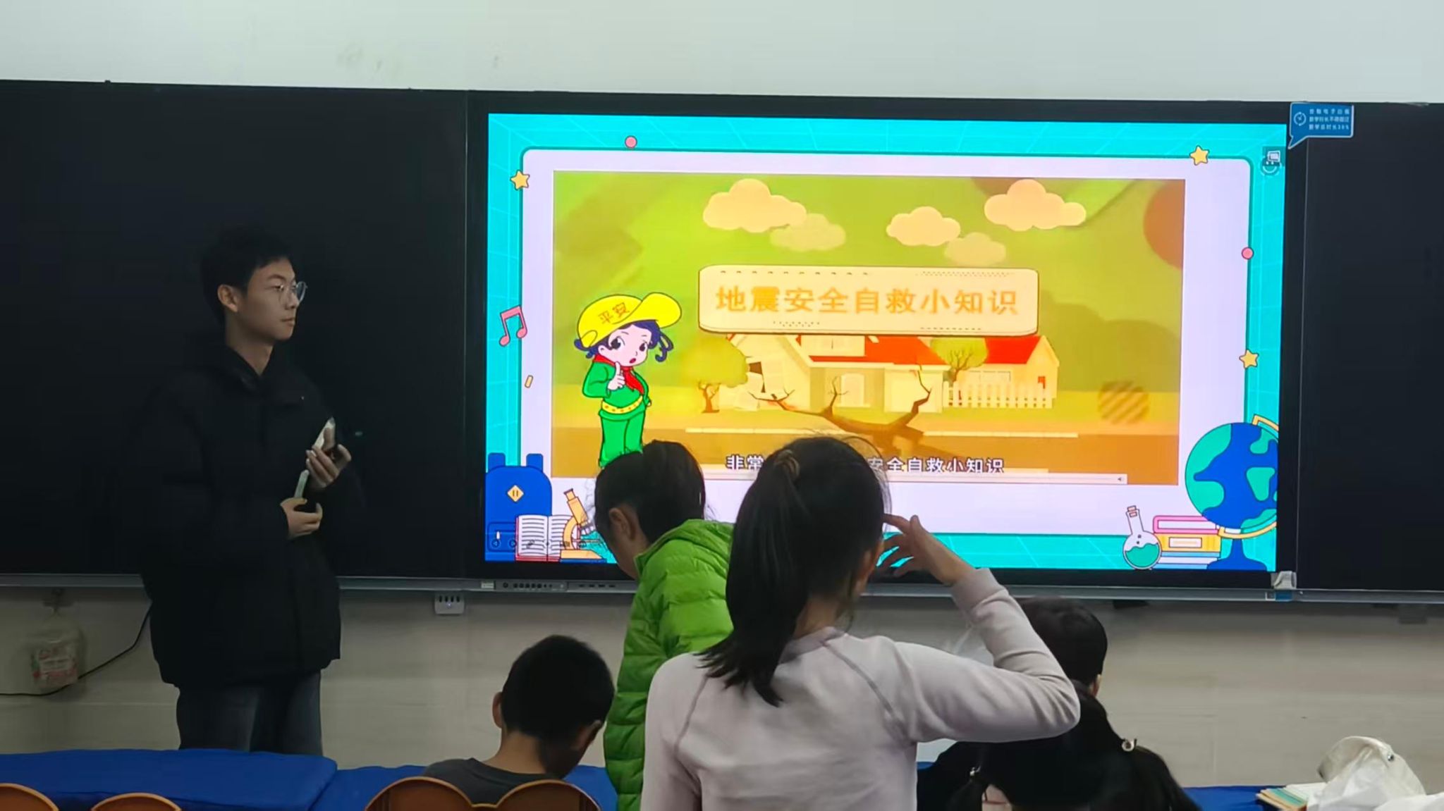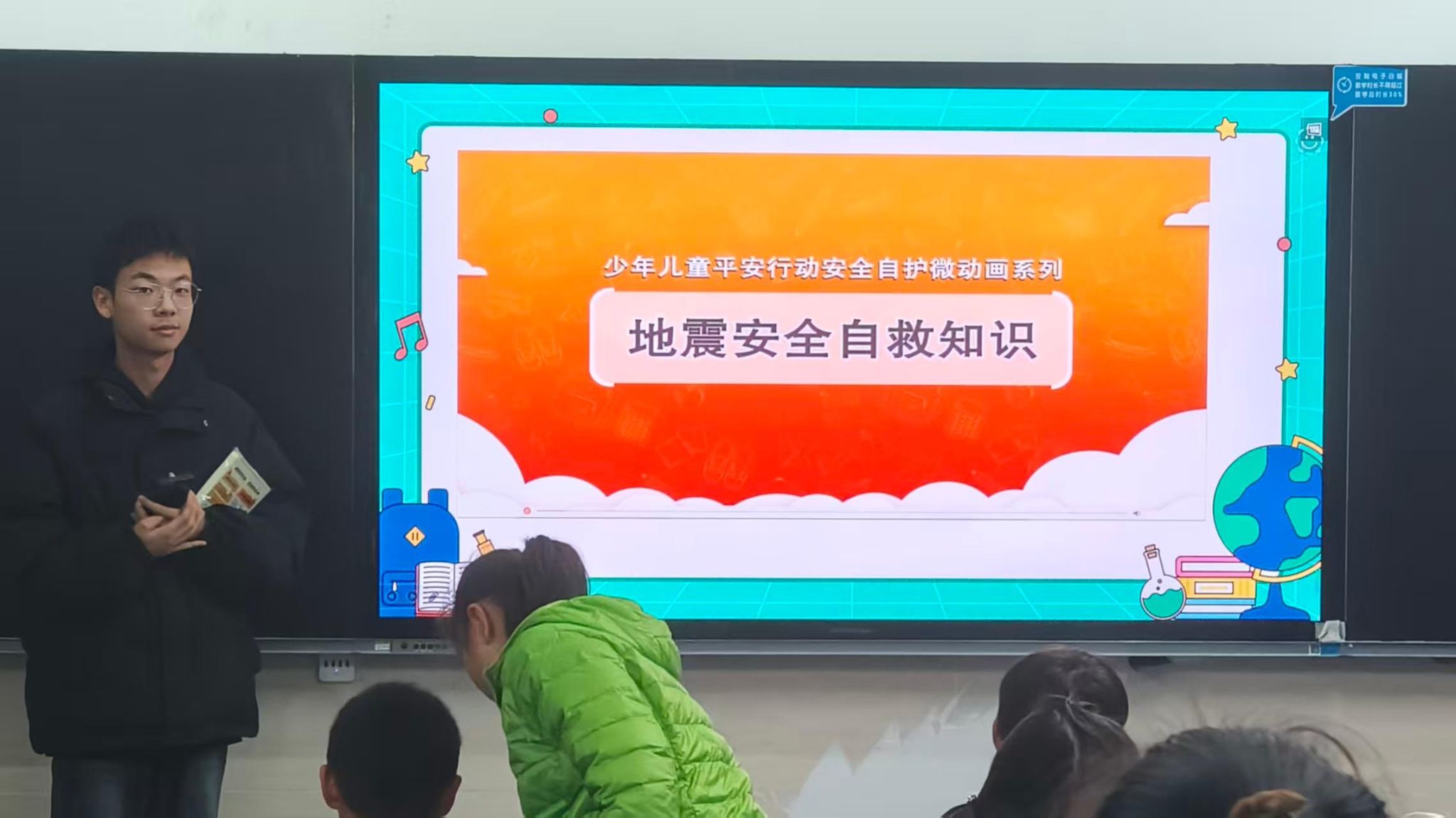 近日,为进一步增强安全意识,提升应对突发灾害的自护自救能力,外国语学院“语党同行”宣讲团走进光谷第六小学开展了一场别开生面的安全自护教育主题宣讲活动。活动围绕地震、洪涝、防火、防溺水四大安全主题,通过讲解、互动、抢答等形式,为小朋友们上了一堂生动实用的安全课。