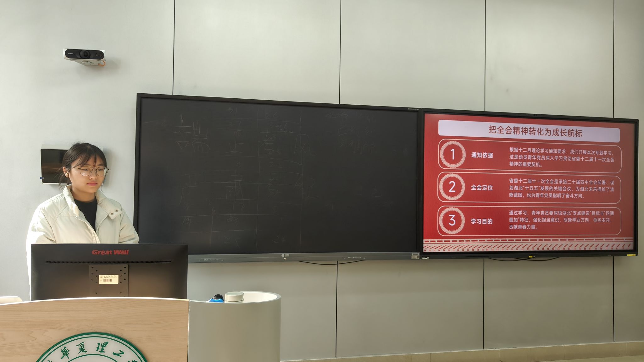 为引导学生党员深刻领会省委十二届十一次全会精神内涵,准确把握湖北“支点建设”目标与“四期叠加”阶段性特征,12月18日中午12:50,武汉华夏理工学院外国语学院党员服务站“国才讲堂”第二十一讲在2-209教室顺利开展。本次讲堂以“学习贯彻省委十二届十一次全会精神”为主题,由23级预备党员——商英1231班陈志娟主讲,英语1237班盛吴丹主持,党员服务站、国才传媒全体成员积极参与。