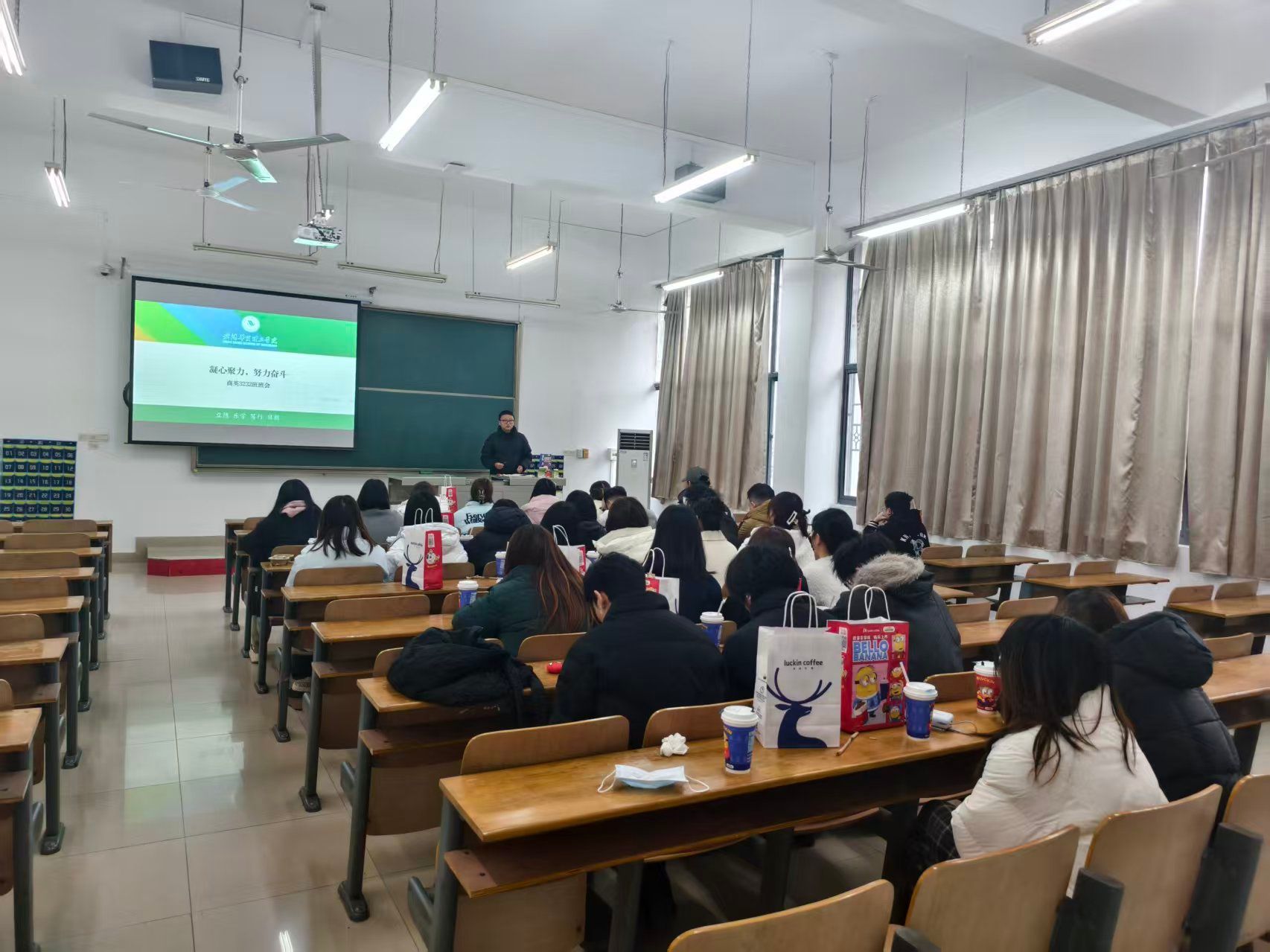 为总结学期成果,凝聚奋进力量,明确未来方向,我院2023级专升本班级于2025年12月22日,召开以“凝心聚力,努力奋斗”为主题的期末总结班会,班级全体同学参加。