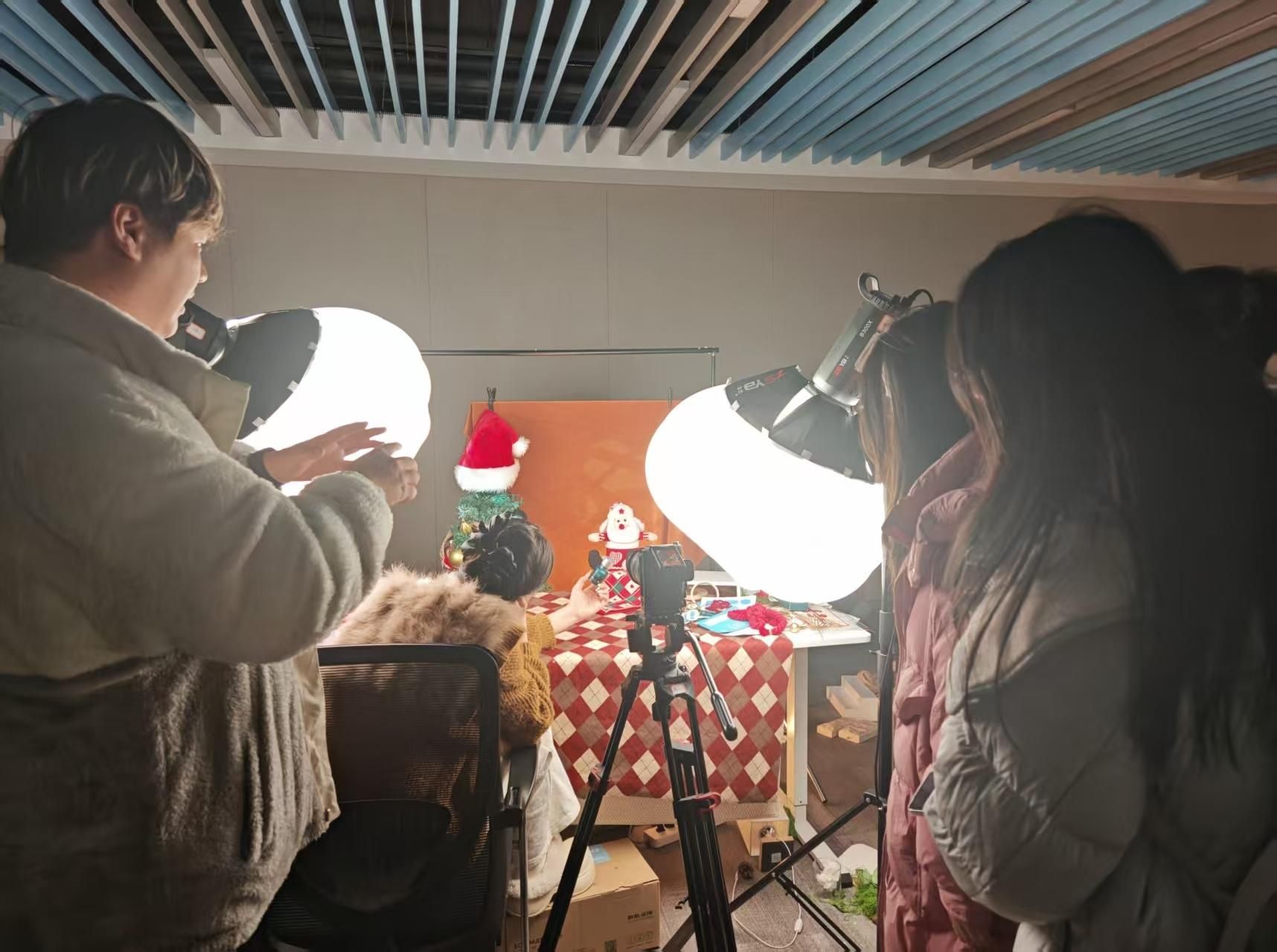 从充满创意的文创产品陈列,到专业的直播设备与场景搭建幕后拍摄,学生们直观感受到跨境电商行业的发展态势与运营模式,纷纷驻足观察、拍照记录,现身体验,并就行业发展、岗位需求等问题与讲解员交流。