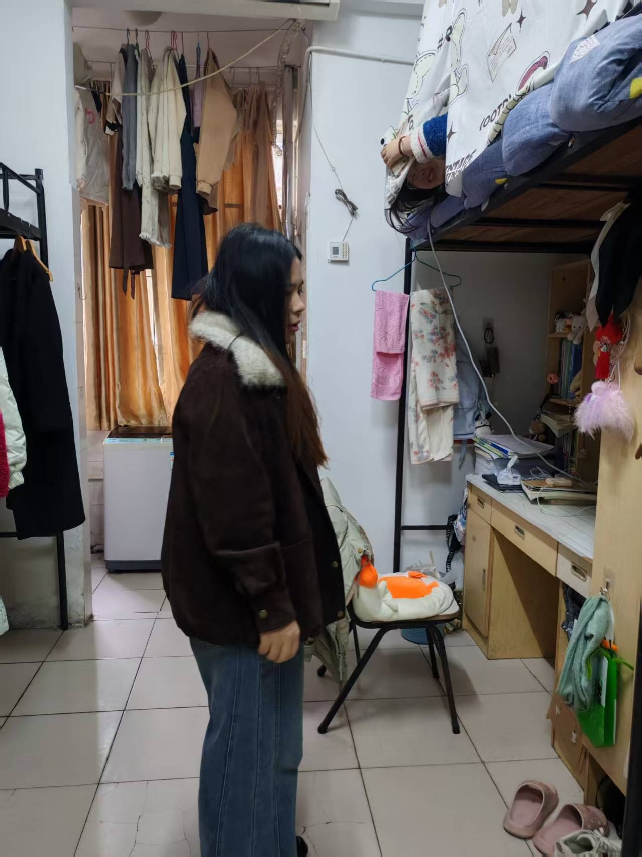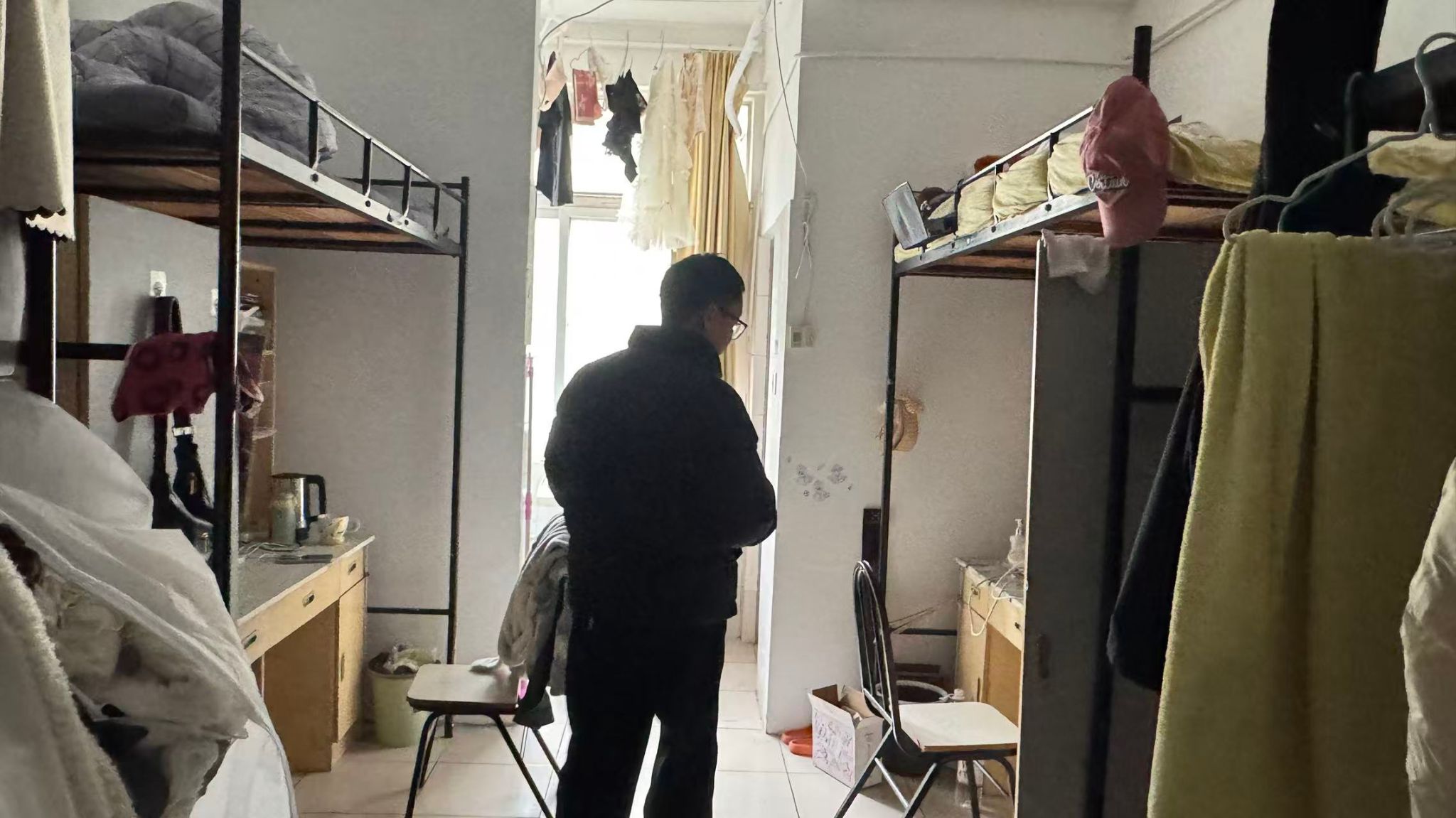在用电安全方面,辅导员重点查看了是否存在私拉乱接电线、违规使用大功率电器(如电热毯、电暖器、电煮锅等)、人走未断电等情况,并向同学们反复强调了违规用电的严重风险。还对寝室门窗、床铺护栏等设施的安全性进行了查看,确保硬件设施无隐患。
