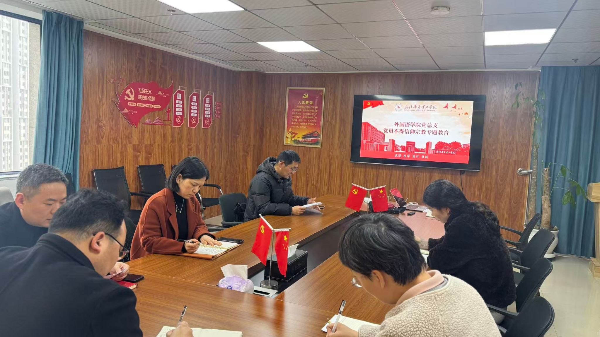 为深入学习贯彻习近平总书记关于宗教工作的重要论述,严明党的政治纪律和政治规矩,引导全体党员做坚定的马克思主义无神论者,外国语学院党总支在组织召开“党员不得信教”专题学习教育会。学院党总支副书记马勇主持会议,全体党员参加学习。