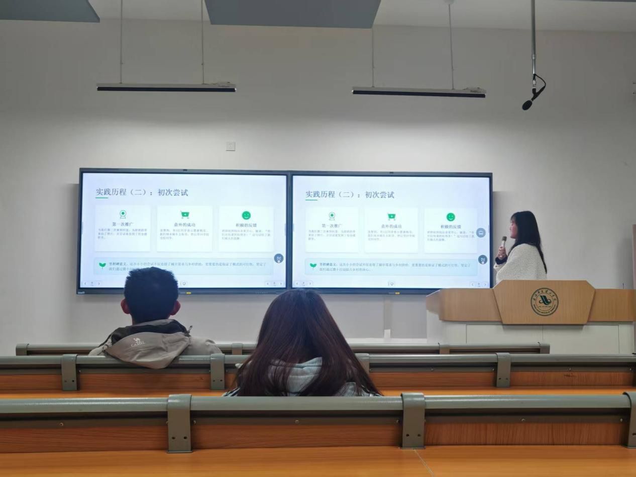 英语1252班尹优同学结合专业优势,带来完整的创业计划书展示,从项目构思、市场调研到运营规划,全面呈现了严谨的创业思路。英语1255班王芷萱同学简要展示了“沸物”麻辣烫创业计划,项目贴近校园生活,思路清晰。英语1256班单兰田同学以“乡邻”——大学生助农小站为项目核心,致力于搭建大学生助力乡村振兴的实践平台,打通农产品产销渠道,彰显了当代大学生服务乡村、回馈社会的青春担当。