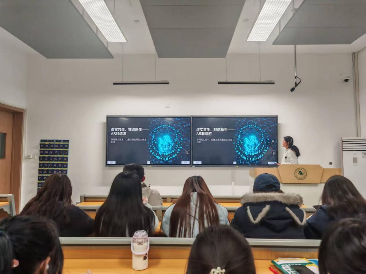 商英1252班李梓毅同学以智享安睡:全自动遮光蚊帐产品介绍为主题,针对校园住宿场景痛点,设计研发全自动遮光蚊帐,产品贴合学生生活实际,创意新颖、实用性强,获得现场关注。商英1252班唐心莲同学带来虚实共生,非遗新生——AR非遗游项目,运用增强现实技术,让传统文化与现代科技深度融合,助力非遗文化走出历史、走进校园、走向大众,展现了外语学子的文化视野与科技思维。商英1252班蔡诗曼同学围绕校园低碳生活实践与可持续发展模式研究展开答辩,立足绿色校园建设,探索大学生低碳生活实践路径,契合国家可持续发展理念,体现青年学子的责任与担当。