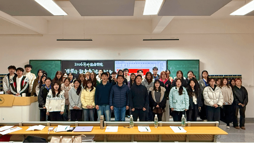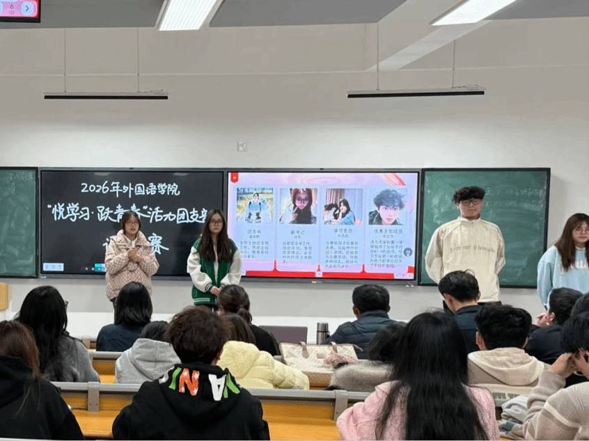 为进一步加强基层团支部建设,激发团支部的生机与活力,凝聚青年学子奋进力量,3月26日,武汉华夏理工学院梧桐湖校区A209教室热闹非凡,外国语学院2026年“悦学习·跃青春”活力团支部评选比赛在此顺利举行。辅导员龚飞、韦文信、吴碧凯出席本次比赛并担任评委,学院各班团干齐聚一堂,同台竞技展风采,共话团支部建设新路径。