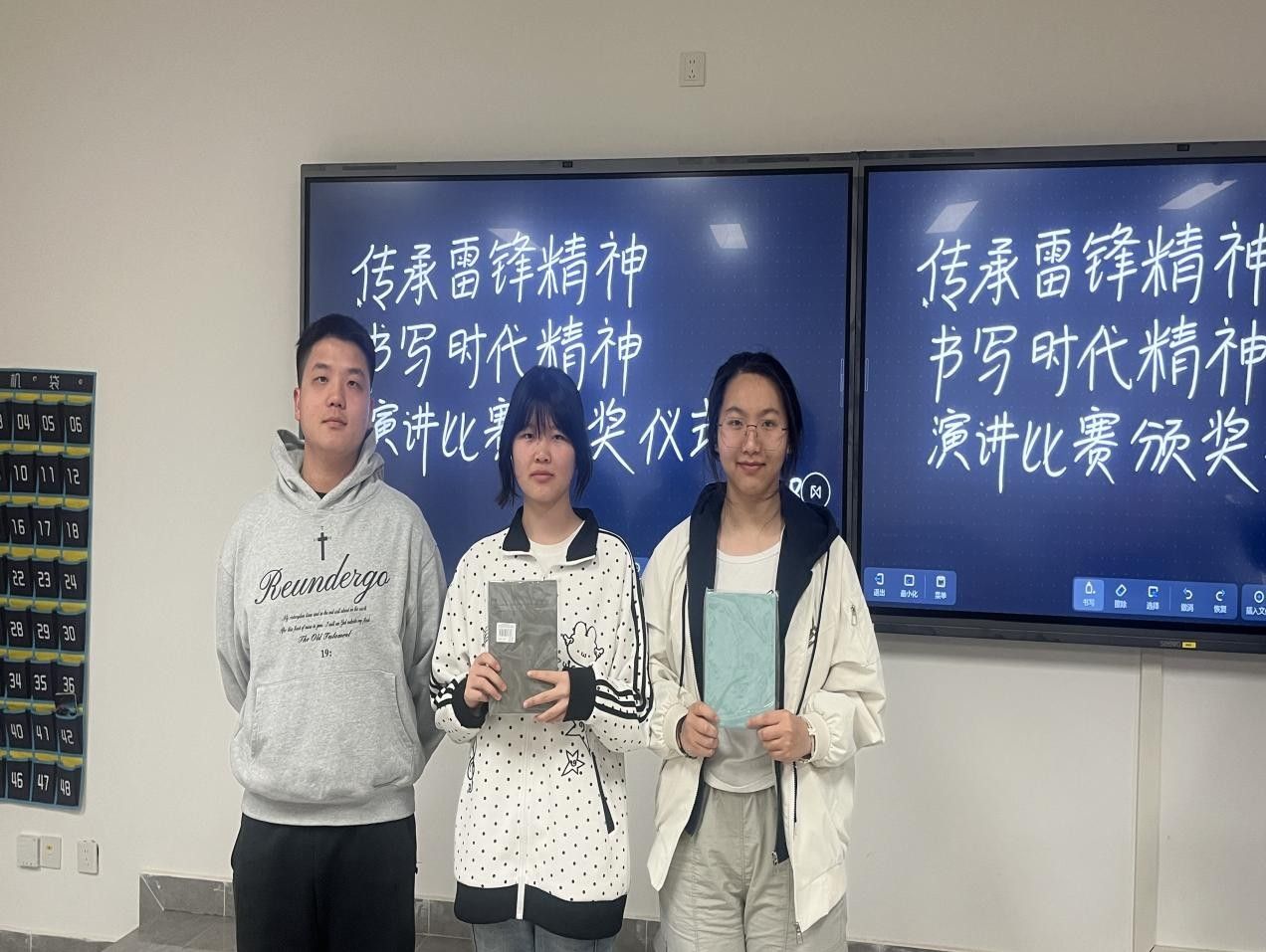 颁奖仪式现场,学院吴碧凯老师为获奖同学逐一颁发荣誉证书与奖品,对各位选手在比赛中的出色表现给予充分肯定与高度赞扬。他勉励全体同学以此次活动为契机,将雷锋精神深深根植于心、落实于行,在日常学习和生活中积极践行“奉献、友爱、互助、进步”的志愿精神,让雷锋精神在新时代绽放出更加璀璨的光芒。随后,获奖同学手持荣誉与奖品,在活动背景板前合影留念,定格下青春践行使命、奋斗收获荣誉的珍贵瞬间。