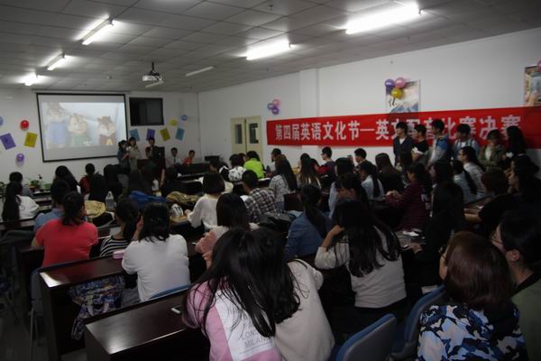 4月28日晚6点,第四届英语文化节英语配音大赛决赛在大学生事务中心多功能厅举行。担任此次大赛的评委有外语系教学办主任吴敏老师,大英一教研室主任王丽丽老师和大英二教研室黄蓉老师。