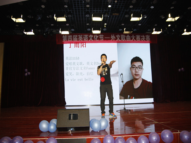 本次大赛是首届外文歌曲大赛,改变以往只有英语歌曲的传统,使选手们在歌曲选择范围更加广泛。大赛伊始,观众们通过VCR对选手进行简单了解。在第一轮比赛中,来自英法1153班的丁雨阳和吴子冉选择了泰勒的歌曲。人文系美女刘雅琪一上台,便赢得了台下一篇惊呼声,其演唱的韩文歌曲One Two Tree Four 更是动感十足。除了个人solo,本次大赛也不乏组合。车辆的赵思凡以及土木的攸子同学男女组合,给观众带来日文歌曲Butter Fly激起台下不少观众童年回忆。广告专业两位女生的组合Dolly Twins带来Bigbang的经典歌曲If You,赢得台下一片惊呼声。期间穿插着的互动游戏——猜歌名,让现场气氛更加热烈。上一届英语歌曲大赛的冠军刘雪纯同学带来吉他弹唱,优美的歌声与自然的舞台表现让观众不住惊叹。在第二轮比赛时,评委老师针对每位同学的整体表现做出具体点评,大部分同学都存在怯场、着装不当的问题。