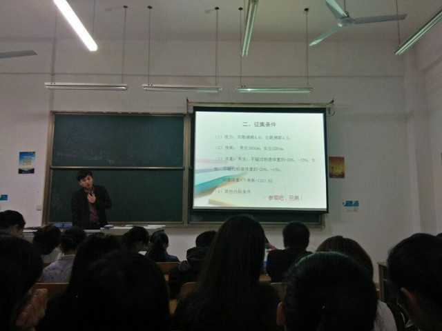 为响应国家号召,配合学校做好大学生当兵入伍工作,4月24日晚上7:00,外语系15级于1教108进行了征兵政策专题晚点评。