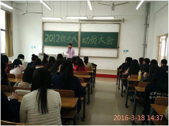 2016年全国英语专业八级考试于3月19日进行。系主任刘沛高度重视专八考试,在上一周例行的系会上重点强调相关负责老师务必做好专八的动员和监考工作。考虑到12级学生大多数已经在外面实习或者正式上班,外语系英语专业教研室主任白燕琴老师于3月18日下午2点30分在1教206教室召开了专八动员大会,当场向学生详细说明了考试的要求、需要携带的证件、考试中需要注意的问题。今年是专八考试题型改革的第一年,较之往年,删除了个别旧题型,新增了个别新题型,作文,翻译,听力,阅读部分都有相应的变化。在动员大会上,白老师就题型的变化以及各部分对应的考试时间也向学生做了详细的说明。此外,白老师还强调了专八的重要性,她告诫学生沉着冷静,认真细致,争取一次性通过考试。