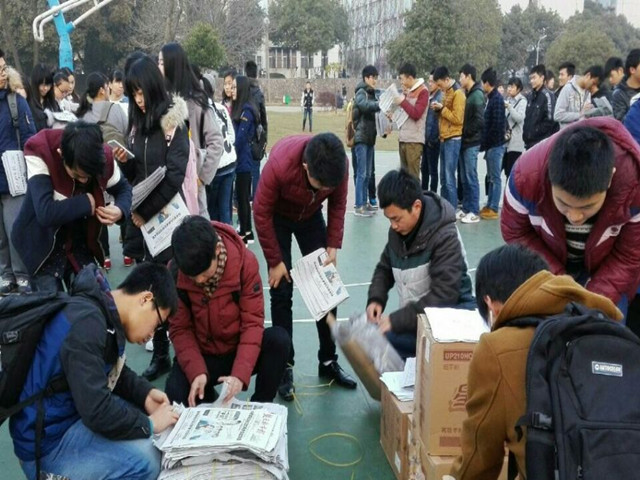 不到早上6点半,各系的志愿者们已早早来到操场上集合。按系分组后,志愿者们在组长的统一安排下每人领取十七份报纸以及帽子、钟卫伟病历诊断书、募捐倡议书。随后,志愿者们一起前往虎泉进行义卖。即使当天的天气温度很低,但志愿者们热情的笑容给这个城市带来了温暖。早晨的行人步履匆匆,对于志愿者们对钟卫伟情况的介绍,有的人会停下脚步,有的人会不屑一顾。无论行人理或不理,志愿者们都没有放弃坚持下去的决心。义卖过程中,有的市民花二十块钱“买”一份报纸,也有人将钱塞进志愿者手中却不拿报纸。在卓刀泉寺,一位师傅听完志愿者的叙述后掏出身上的所有现金,还有一些别校老师留下自己联系方式,希望可以尽自己的力量帮到钟卫伟同学等等,这些市民的善举就是志愿者们坚持的动力,也温暖了志愿者们的心。