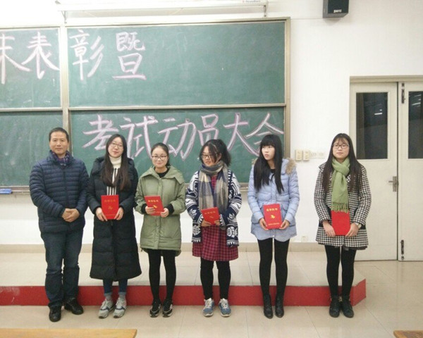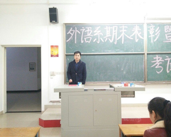 1月6日晚17:40,外语系于一教101开展了期末表彰暨考试动员大会。参加本次大会的有外语系主任王英、辅导员王江洪、刘涌志以及团学联全体成员。