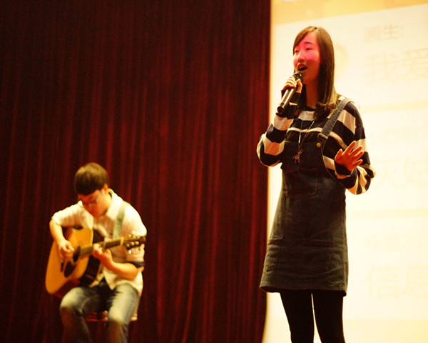 12月11日晚7点,由我院外语系和信息工程系联合举办的“携你我之手,创靓丽青春”主题晚会在我院学术报告厅届时举行。在两系的共同努力下,经过紧锣密鼓的晚会筹备后,两系携手为同学们带来一场视觉和听觉盛宴,使本次晚会取得圆满成功。
