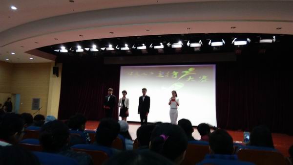本周四晚上六点半,华夏之声主持人大赛(always be my self)决赛在学术报告厅隆重举行,受到参赛选手的热情邀请,外语系第一教研室教师荣幸地观看了整场比赛。比赛分为三个环节:第一轮是播放每个选手的VCR,并请选手针对社会热点发表3分钟的即兴演讲。第二轮比赛形式为搭档主持。经过两轮的激烈角逐,剩下4位选手进入决赛,即情景主持。即使是在这么寒冷的冬夜,观看这次主持人大赛仍然让人热血沸腾,从比赛的开始到结束,每位选手都表现出了非常高的语言能力,自我修养及主持水平。最后冠军由7号选手吕妍摘得。除了比赛,作为暖场节目,学院健美操队,拉丁舞队及话剧社的表演也让人惊艳。作为非专业人士观看比赛,外语系教师也为所有参赛选手感到骄傲,也期待有更多这类形式的比赛来激发学生的潜能,展现自我。