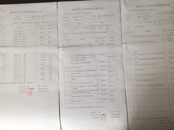 本学期外语系12、13、14和15级英语专业学生共开设30多门专业课程,经英语专业教研室初查,专兼职教师均已上交教学日历,只缺外教的。总体完成情况良好,但也暴露出一些问题,如对外教的教学管理还需要加强。
