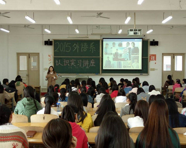 整个分享会持续了两个小时,气氛轻松活泼,讲座在全体新生的热烈掌声中圆满落下帷幕。通过此次讲座,不仅使外语系新生们了解到了就业与实习的相关知识,而且认识到了知识与能力的重要性,对学生今后的人生规划指引了方向,使同学们也受益匪浅。会后,许多同学纷纷表示,自己对外语专业的就业前景充满信心。