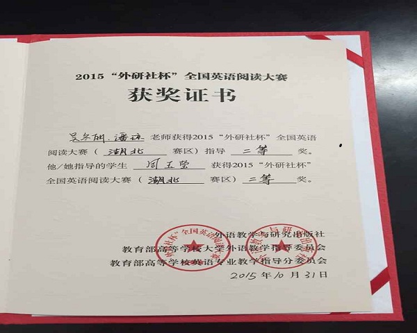 外研社杯全国英语阅读大赛旨在推动英语阅读教学,提高学生英语阅读水平,引领高校外语教学的改革与发展,为全国大学生提供展示外语能力、沟通能力与思辨能力的综合平台。旨在通过这样的比赛能让更多热爱英语的学生参与进来,展现出各自的水平。本次比赛由外语系系主任刘沛教授及外语系书记肖凤华老师牵头组织,负责本次阅读大赛的外语系潘琼老师和吴冬丽老师则利用暑假时间,在网上对同学们进行了为期一个月的暑期培训,主要是在线辅导和阅读训练,通过布置作业对学生进行一对一指导实训。在此之前,潘老师和吴老师在校组织进行了初赛和决赛,为华夏学子在本次院级省级比赛中获得佳绩贡献出自己最大的力量。