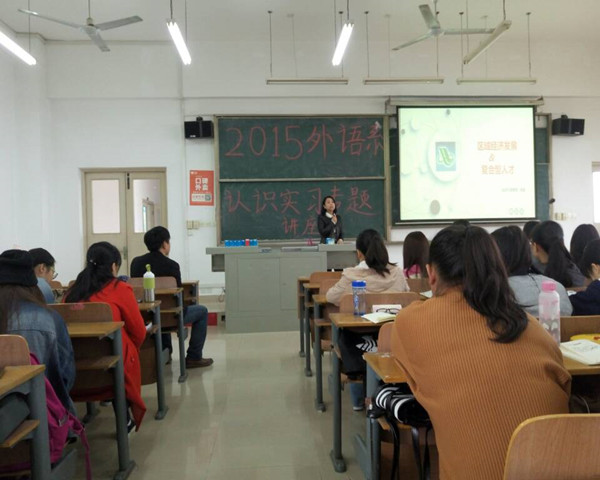 11月4日上午8点30分,外语系有幸邀请到经济管理系谭瑛老师在教学楼1-401为外语系15级新生开展了主题为“湖北经济发展”介绍会,参加此次介绍会的有我系15级辅导员刘涌志及15级全体新生。