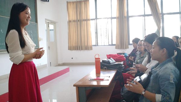 10月14日中午,英语1132班全体成员在1-101教室召开了一场名为“与时间赛跑 我要我的大三更精彩”的主题班会。班导师江倩老师特意邀请了12级优秀学生黄敏,与大家深入交流,并提供了宝贵建议。此次班会,无疑是一剂强心针,为大家今后,尤其是大三这一年的学习生活提供了非常重要的指导意义。
