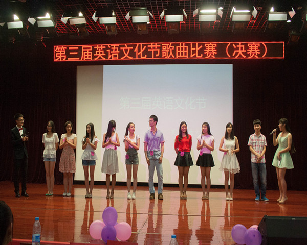 5月25日晚6点30分,由外语系举办的第三届英语文化节英文歌曲决赛在学术报告厅届时举行,在经历了初赛的激烈角逐后,来自各系的共有10位选手成功入围决赛舞台。出席本次决赛的嘉宾有外语系吴婷老师、莫亚萍老师,院团委龚静老师以及著名肚皮舞老师田维维和她的学生舞团。