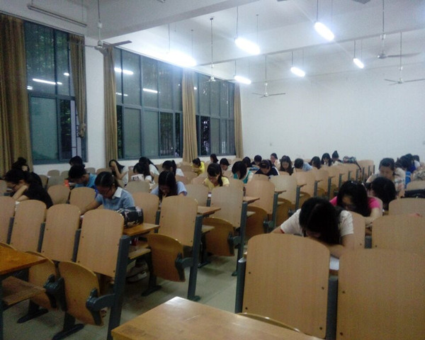 此次笔试的时间为6:30-7:30,试卷由外语系杜英老师出卷,朱珊珊老师、杜英老师、江倩老师负责批改。笔试开始后,同学们都埋头对试题进行分析、翻译。参加此次笔试的外语1144班金红艳说:“这次的人多,选题有含金量,难倒了一大片人,但是句子整体结构不难,自己词汇量有限,专有名词翻译不好”。