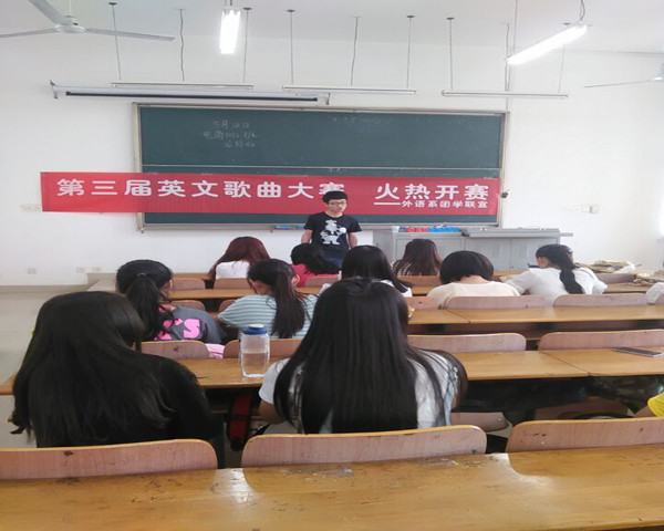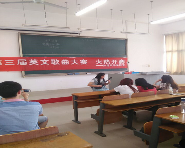 5月18日晚6时,第三届英语文化节之“英文歌曲大赛”初赛在教学楼1-203火热开赛,来自各系的金嗓子纷纷一展歌喉,比赛现场尽显十足的欧美金曲范儿。