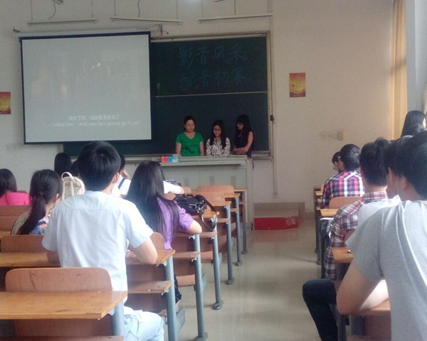 5月16日12点30分,第三届英语文化节系列活动英文配音大赛在1-203、204、206开展。担任本次评委的老师有王玉老师、吴敏老师和王丽丽老师。来自全院的60余组参赛选手参加了本次配音比赛的初选。