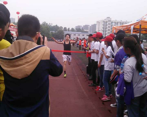4月24日下午两点半,在我校运动会男子1000米赛跑项目中,外语系大四学生刘凯喜获冠军。