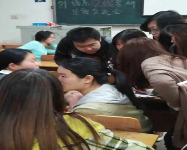 交流会上,万芳梅认为兴趣是最好的老师,选择考研专业一定要按照自己的兴趣来做决定。并详细地介绍了考试题型收集方法,比如进入论坛,加入贴吧,加入QQ群等。随后,胡静简谈了武汉各大高校英语考研录取以及题型难易程度情况。她还细心的给大家分析了华师考研题目变化趋势。最后上台进行分享的是来自武汉大学的陈晓会,她介绍自己的读书方法,也就是每读一本书,就对其列一个提纲,让自己对读过的内容有些更深刻的认识。