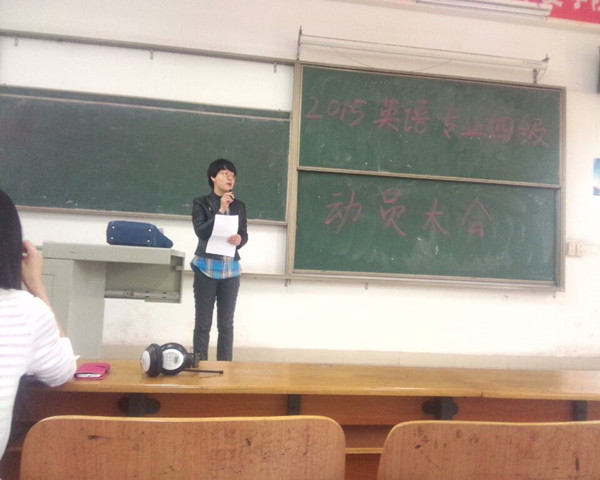 4月17日下午四点,外语系在教学楼1-101举行了2015年英语专业四级考试动员大会,此次动员大会由外语系白燕琴老师对即将应试的考生做考前相关准备工作。大二辅导员王英和大二全体考生参加了此次动员大会。