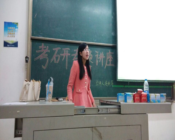 12月21日晚,在教学楼1-103我系特邀请到优秀毕业生连丽萍,现为武汉理工大学英语语言学研二学生,为我系大三学生做考研经验交流分享,给正在为奔跑在考研路上的学弟学妹们指明了更加清晰的前进方向。