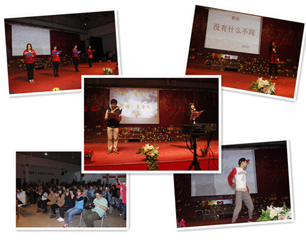 18时50分,外语系文艺部拉拉队的九位成员用他们热情动感的热舞把现场观众的热情瞬间点燃了。随即,各种形式的节目连番上演。歌舞、小品、朗诵、合唱、乐器演奏等精彩的节目带给观众丰盛的视听盛宴。串烧歌曲《Love story&Diamond》充分展现了外语系学子堪称完美的英文发音;诗朗诵《因你而精彩》,深情饱满,向大家传递着对华夏对生活的热爱;小品《杨博的那些事儿》生动展现了时代变迁大学生不同的爱情观。此外,还有唯美的吉他弹唱《是不是爱情&斑马斑马》,动感的街舞表演《我怀恋的》,时尚的集体舞蹈《小苹果》,动听的歌曲演唱《没有什么不同》等精彩节目,让观众目不暇接,掌声阵阵。