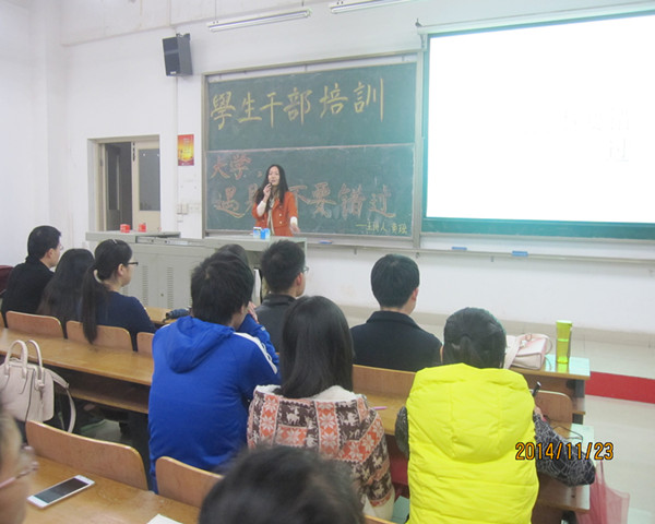 为促进我系学生工作更好运行,加强各方面的组织建设,11月23日下午5:30分,在1—101开展“学生干部培训”活动,本次活动我系特邀请到大四优秀学生黄瑶分享工作学习的心得体会。本次培训的主题是:大学,遇见就不要错过。我系团学联及各班学生干部参加了本次培训大会。