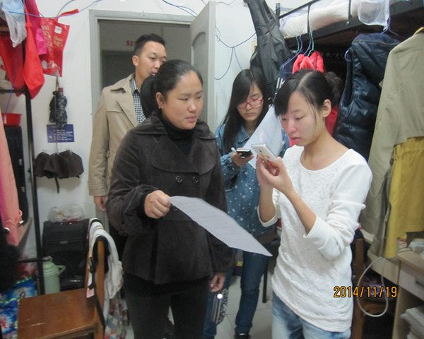 为响应武汉市创建文明城市的号召,加强我系学生创建文明校园的热情,11月19日晚,我系学工办马勇主任,辅导员王英、付寿康老师以及生活部成员一同走进外语系各学生寝室进行“文明武汉、文明校园”的宣传活动。