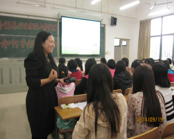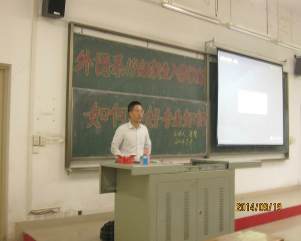 2014年9月19日上午8点30分,外语系新生入学教育之如何学好专业知识专题讲座在1-101举行。本次入学教育由我系骨干教师唐慧担任主讲,参加本次活动的是大一辅导员付寿康,各学姐班主任及大一全体新生。