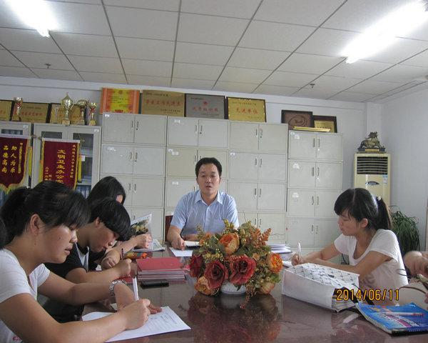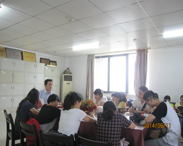 2014年6月11日,外语系全体班长、团支书会聚一堂,与学工办主任马勇老师在系内会议室共同商讨各年级的班级工作。