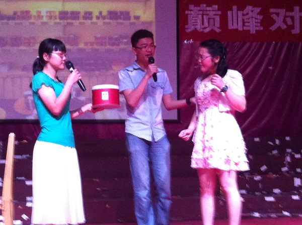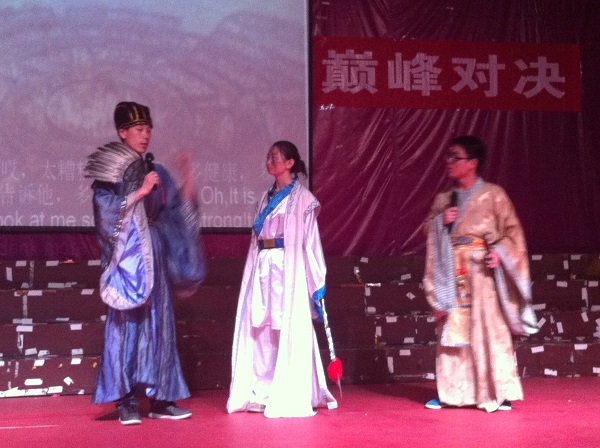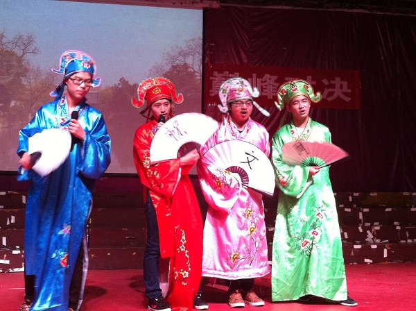 最后,经过激烈角逐,来自工商1132的《三笑三国》摘得桂冠,获得一等奖。来自英语1113《孔雀东南飞》和来自工商1131的《唐伯虎点秋香》获得二等奖。来自机电1131,1132及网媒1131的《收服猪八戒》和来自会计1135以及机电土木等多个专业的《奇怪的一天》和来自英语1124的《Music Cake》获得三等奖。来自英语1131的《新梁祝》获得最佳组织奖。机电1131的李翔和工商1132的罗倩分别获得最佳男女主角奖。