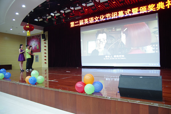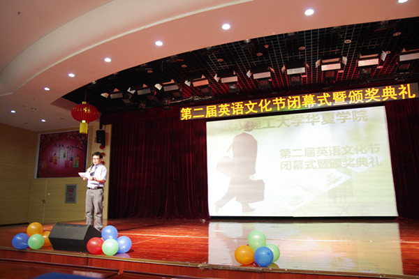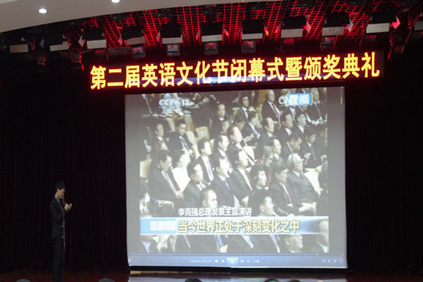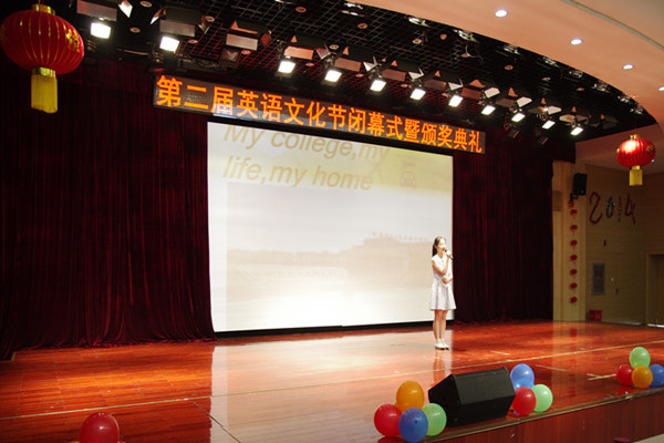 6月5日14:30,由院团委和外语系联合举办的第二届英语文化节在我院闭幕。本届文化节以“中国梦,华夏情”为主题,历时一个多月,共开展8项英文活动。副院长、党委副书记吴汉桥,副院长李海民,副院长丁成忠,纪委书记王世超,工会常务副主席刘高潮,教务处处长李猜,人力资源部部长朱彦飞,外语系系主任刘沛,外语系党总支书记肖凤华以及各职能部门领导、老师出席本次闭幕式。