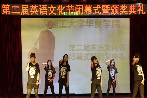 闭幕式上,首先播放了本届英语文化节的精彩回顾短片,展示了外语风采,唤醒了大家的外语热情。紧接着是外语系啦啦队的开场舞,一曲《number nine》,为大家带来一段轻快、动感的舞蹈,展示了学生的蓬勃朝气。