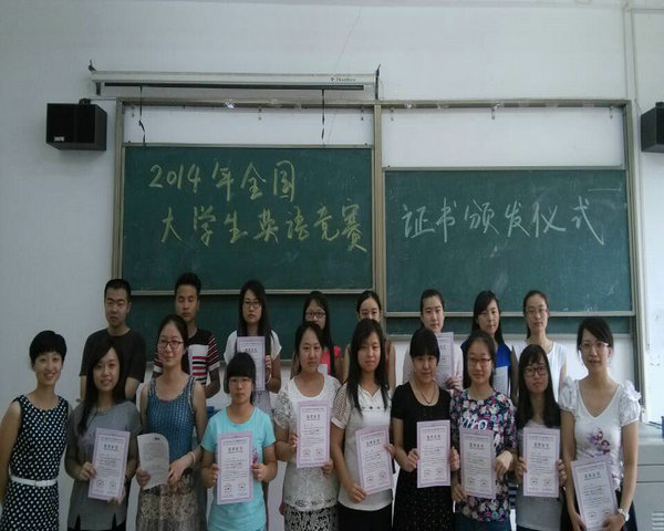 2014年全国大学生英语竞赛已落下帷幕,我院共有来自各系的44名学子榜上有名。其中有15名同学获得三等奖,21名同学获得二等奖,更有8名同学在全国上万名参赛选手中脱颖而出,拔得头筹。外语系在6月6日下午2点30分于教学楼举办了隆重的颁奖仪式。获奖学子悉数到场,并有外语系教研室王丽丽老师、王钰老师、潘琼老师、吴婷老师作为颁奖嘉宾为获奖学子颁奖。