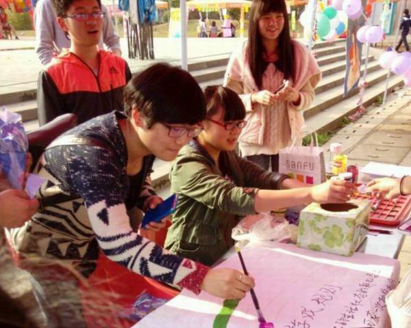 在特团活动期间,外语系1122班、1133班团支部分别走进湖北省荣军医院和佛祖岭福利院,开始了3个月的“关爱临终老人”、“倾听老人心声”的志愿者活动。志愿者们走进老人休息的房间,陪老人们拉家常、打扫卫生,为老人打饭、询问他们的生活情况,在一对一的互动交流过程中聆听这些空巢老人们的心声。团员们以留言板、唱歌、讲故事等丰富的活动形式与内容给老人们带去欢乐和问候。同学们也将自己的衣物和书本,及其他有用的东西收集起来,并且向全校倡导爱心捐款活动,共同捐献给武汉阳光儿童福利院的孩子们。