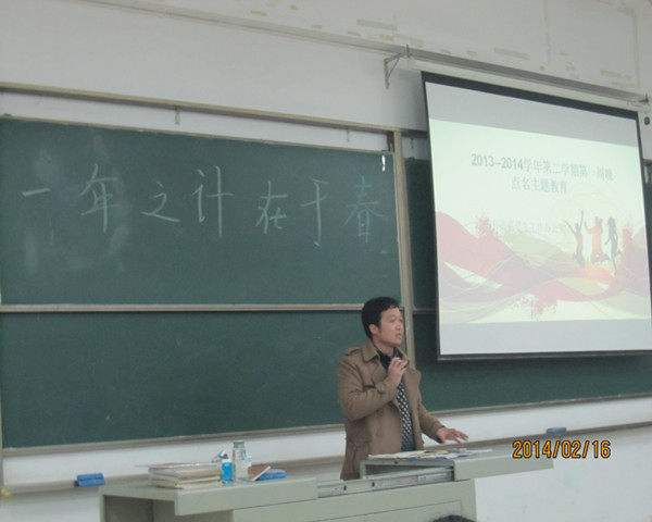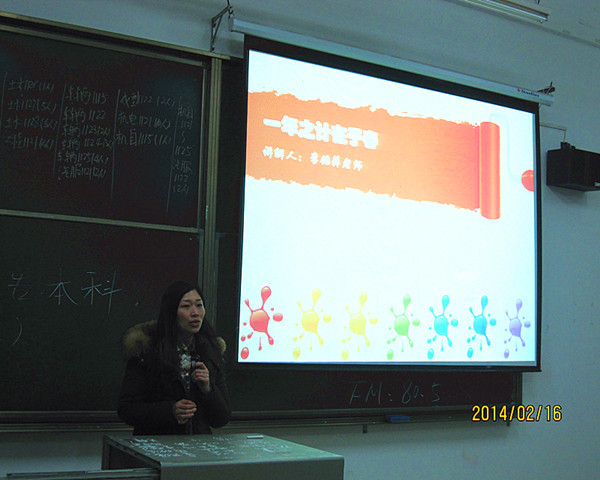 2014年2月16日晚6:00,外语系全体师生召开了主题为“一年之计在于春”的新学期见面会。会议上,学工办主任马勇老师,辅导员李艳萍老师、王英老师针对不同年级,提出了各方面的要求与鼓励,目的就在于让全体学生在新的学期开好头。