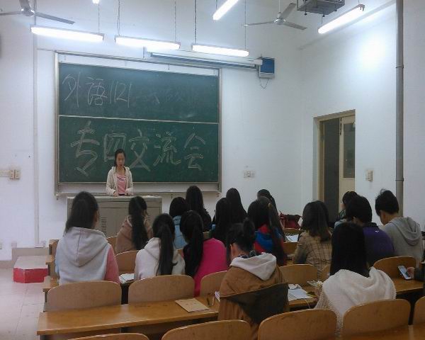 为积极响应学院学风建设月活动,外语系各班已从本周开始相继开展专四、专八经验交流会以促进系内学风建设。11月21日上午,外语系1121班邀请了11级专四高分获得者童雅琪、赵威同学在2-205进行专四经验交流。