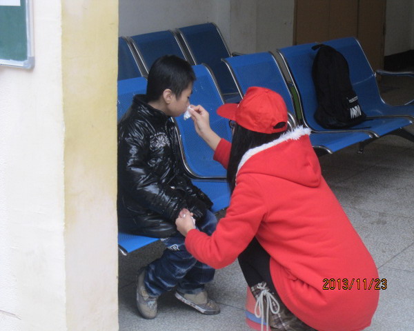 到达“启明特殊教育”学校时,孩子们还在屋里吃早餐。志愿者们因从未与自闭症儿童接触,不免有些紧张。随后,孩子在老师的带领下来到了志愿者们的面前。这些孩子因“自闭症”无法用语言与志愿者沟通,但从他们的表情可以看出他们是激动,开心的。
