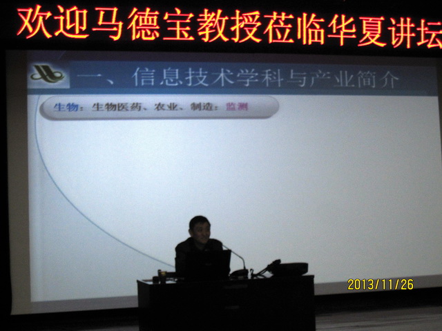 2013年11月26日晚7点,武汉理工大学华夏学院学术报告厅举办了第135期以“信息技术学科与国家战略性新兴产业”为主题的华夏讲坛。此次讲坛是由我校博士生导师马德宝教授主讲,旨在为同学们介绍信息技术与新兴产业的发展以及两者互融的关系。