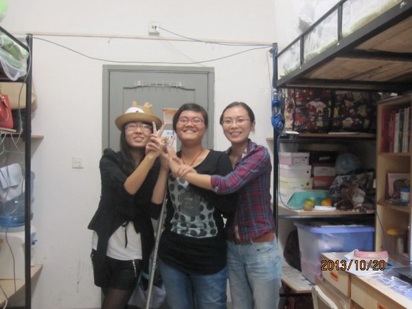 宿舍离食堂和教学楼都有一段距离,还要上下楼梯,考虑到刘煦身体不便,宫程鑫和陈杰每天早上6:30先去食堂先帮刘煦买回早餐,大家一起在寝室吃完早餐再一同去教室。寝室中年级稍大的宫程鑫被室友们可爱的称为“宫妈妈”。陈杰告诉记者,在大二时,宫程鑫因为生病住院一个院而没能去上课,但在住院的她却时常记挂刘煦的生活。宫程鑫每天打电话叮嘱陈杰:“记得地上不要有水,以免刘煦滑到!”当谈到于室友相处的感受时,刘煦表示由于自己行动不方便,和室友的生活节奏总会有些出入,但我们从未有过争吵!生活中的种种细节深深地感动着刘煦,她在日记中写道:“你们是世界上最称职的朋友,谢谢你们!”