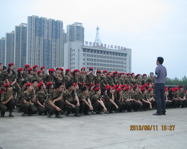 2013年9月11日晚6:20,我校大一新生和来自海军工程大学的教官于学院操场首次会面,2013届新生军训拉开帷幕。外语系全体大一新生于国旗杆下集合。