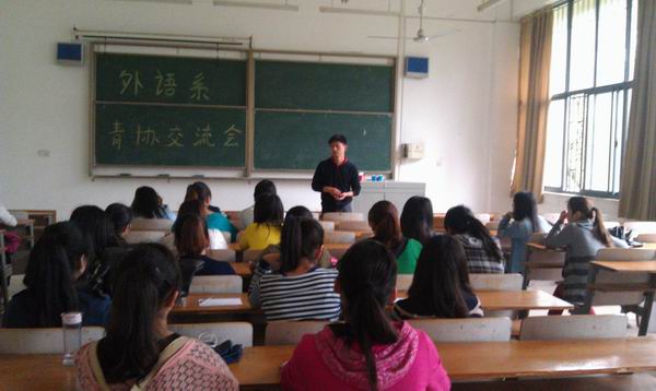 为了扩大青年志愿者协会在院系中的影响以及认同感,特此于本月9日在3教107举行了青协交流会。本次交流会由外语系青年志愿者协会举办,参加人员除了青协内部成员,并邀请了青协指导老师郭杰,外语系大一和大二各班的组织委员和心理委员。
